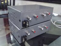 I am thinking WxDxH (6"x4"x2") black metal box for tek and spicemonkey's kits. Mine will placed along with 4-1 relay selector and ladder volume control at the output. So I will use slightly bigger box. My none of the amps have any volume control. So I need it in preamp.PS: what cabinet are you guys planning on?