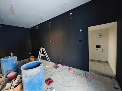 After long struggle, the room is in some shape now. Had a big chaos with the building contractors and now, the bare room is ready with electricity.