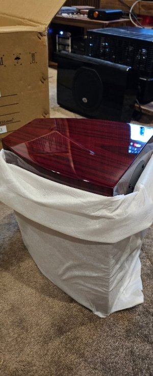 Presently, I have set them up in my main listening room to understand and enjoy them a bit more intimately before they are relegated downstairs. The current stands look less than stellar with the Cayins but they are eventually to be perched on top of the dark wooden ones in the last pic. The chain was Ifi Zen Stream(Source)>Rme ADI-2 DAC FS(DAC)>Eversolo A8(PreAmp)>Wilsenston R800i(Amp)>Cayin Lyre T30 Mkii(Speaker).