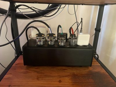 Made these myself - got some fancy power connectors - "furutech looking - fakes"; a thicker shielded power cable -Aucharm PPC 4.0. for speakers & sub & finolex for the Xbox & CXN :)